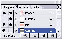 21. Lock the “images” layer and unlock the “cable” row. Click on the cable row to highlight it.