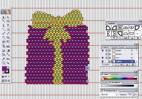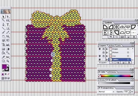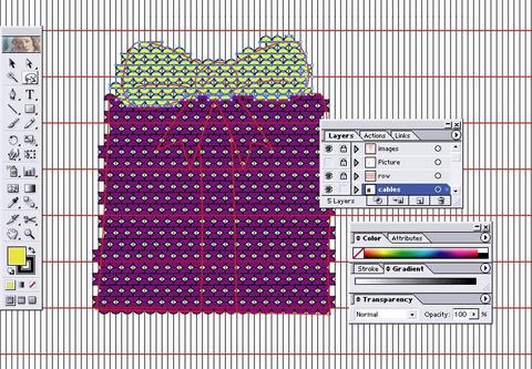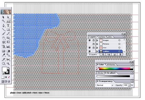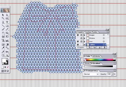 22. Using the lasso tool (Hotkey: Q), draw around the excess cables and delete them. Be sure to leave at boundary of two or three rows of stitches around the motif.