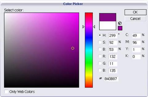 24. Click on the Fill box in colour palette. Change the colour to CMYK colour 49/96/1/0.