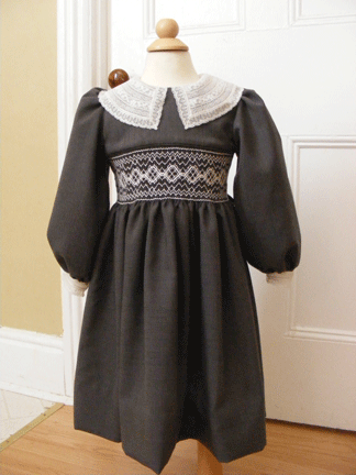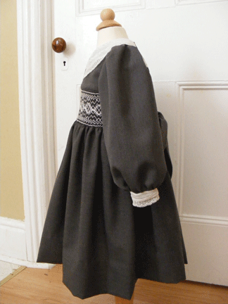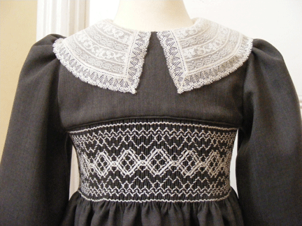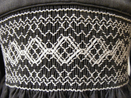 I did backsmock the holding row. Since a friend recommended this technique to me, I’ve adopted it for all my smocking projects. It makes a world of difference. Not only does it keep my pleats beautifully erect, it makes construction a breeze, too, because I have an accurate line to follow when I am stitching the inserts in place. No more ‘rip and fiddle’.